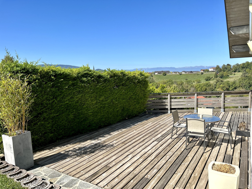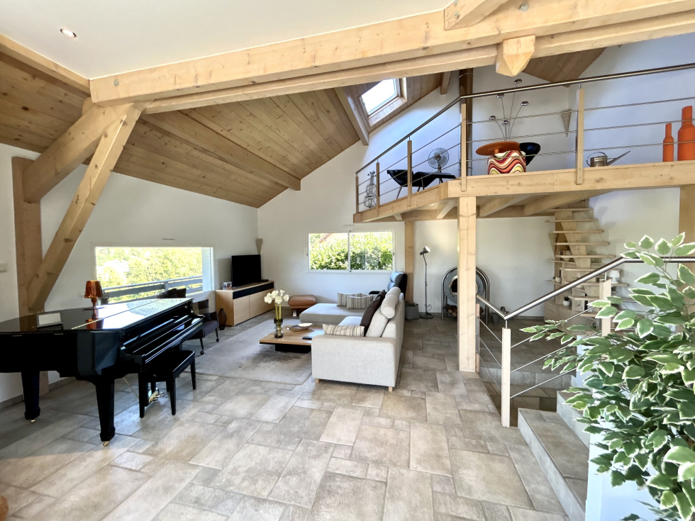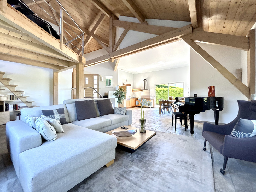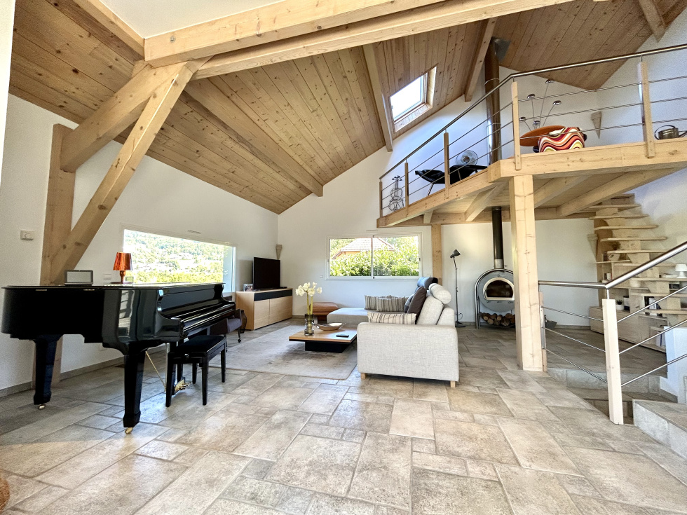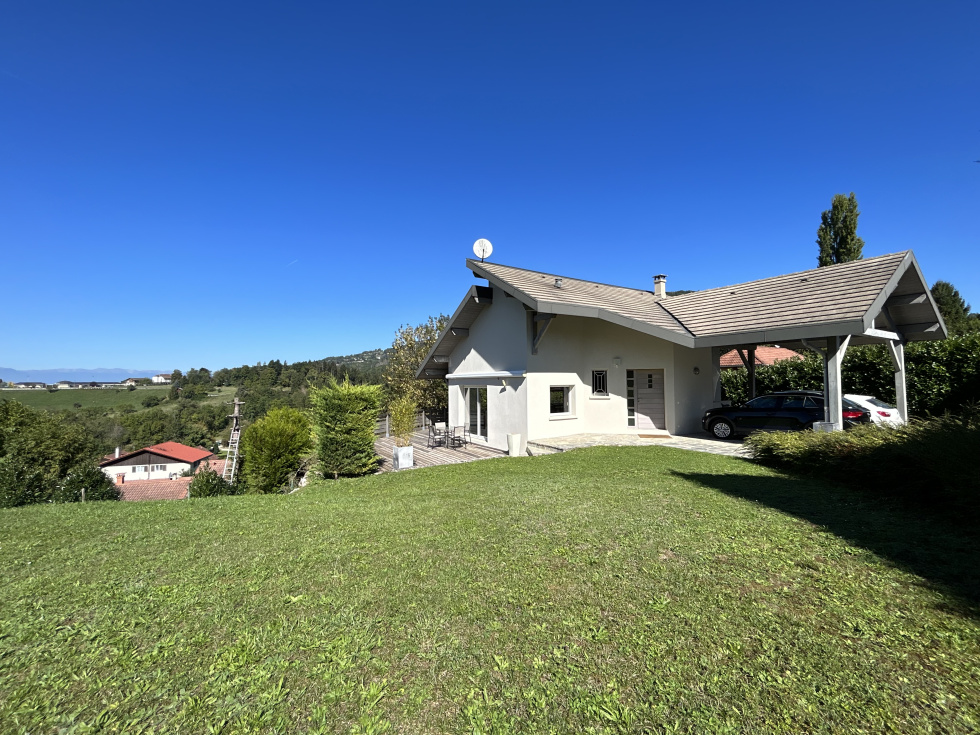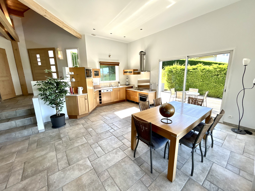 Découvrez cette belle villa contemporaine sur deux niveaux d'une superficie de 138 m2 composée d'un bel espace de vie de 54 m2 avec cuisine équipée ouverte sur un beau salon/séjour avec mezzanine, le tout donnant accès à une terrasse avec une magnifique vue dégagée sans aucun vis à vis, 3 chambres dont une suite parentale, grande SDB, 2 Wcs. Deux espaces caves. Le tout sur une parcelle de 1115 m2 avec places de parking et abri voiture.