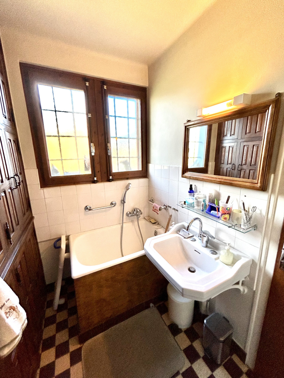 Quartier calme et résidentiel pour cette maison des années 60. Elle comprend une cuisine séparée, un salon ouvert sur terrasse, trois chambres, salle de bain et wc séparé. A l'étage, combles aménageables. Nombreux rangements. Sous-sol complet. Le tout sur une parcelle de 2867 m2 dont 1477 m2 situés en zone constructible et la seconde partie en zone agricole. Une dépendance ainsi qu'un abri voiture complètent l'ensemble.
