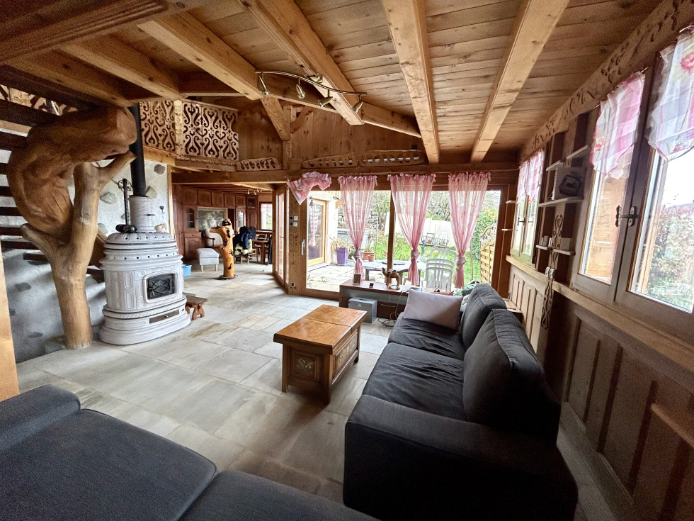 Au sein d'un quartier calme et résidentiel, beau chalet de 142 m2 construit en 2005. Il comprend aur rez-de-chaussée un bel espace de vie avec cuisine, salle à manger et séjour cathédrale donnant sur la terrasse et le jardin avec spa, salle de bain, cellier / buanderie. A l'étage, mezzanine avec balcon offrant une belle vue dégagée sur le jura, trois chambres , salle d'eau et WC. Sous-sol disposant un garage de 25 m2, grande cave et chaufferie. Studio bénéficiant d'une entrée indépendante. Le tout édifié sur une parcelle de 500 m2. Prestations soignées et matériaux haut de gamme.